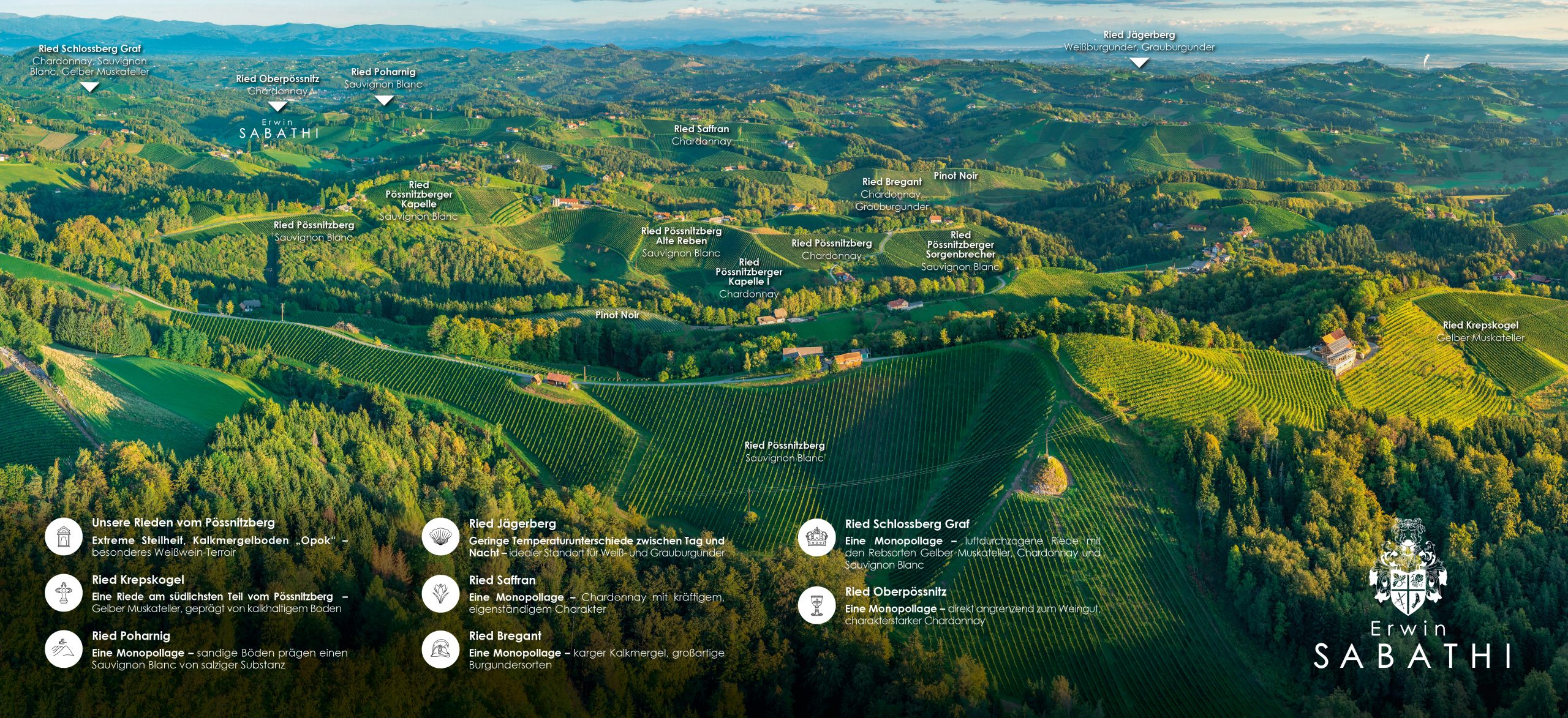 Unterschiedliche Rebsorten, die innerhalb einer Riede gedeihen, lassen in Folge der Lage und der Bodenbeschaffenheit dieser Riede, Weine gleichwertigen Charakters hervorbringen.